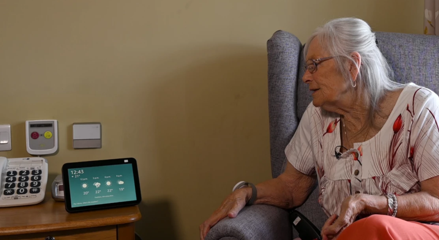 Senior living residents use Alexa to communicate with staff, including checking in and asking for help.